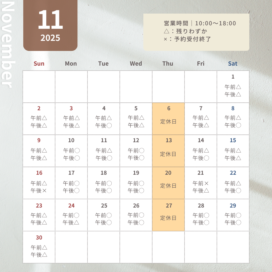 ●予約状況● 10月13日(月)時点 現在2025年12月31日撮影分まで予約可能 ◯や△の場合でも美容・着付の有無によりお入りいただけない場合がございます (女の子やママなど女性のお支度がある場合は特にお急ぎ下さいませ) ●ご予約について● お問い合わせはLINEからも可能ですが、正式なご予約はお電話にてお願いしております。やむを得ない事情でLINEでのやり取りをご希望される場合はその旨をお伝え下さい。なお仮予約は受け付けておりませんので、LINEからの場合はすべての確認事項のやり取りが終了した時点で日時を押さえさせていただきます。 ![]() |