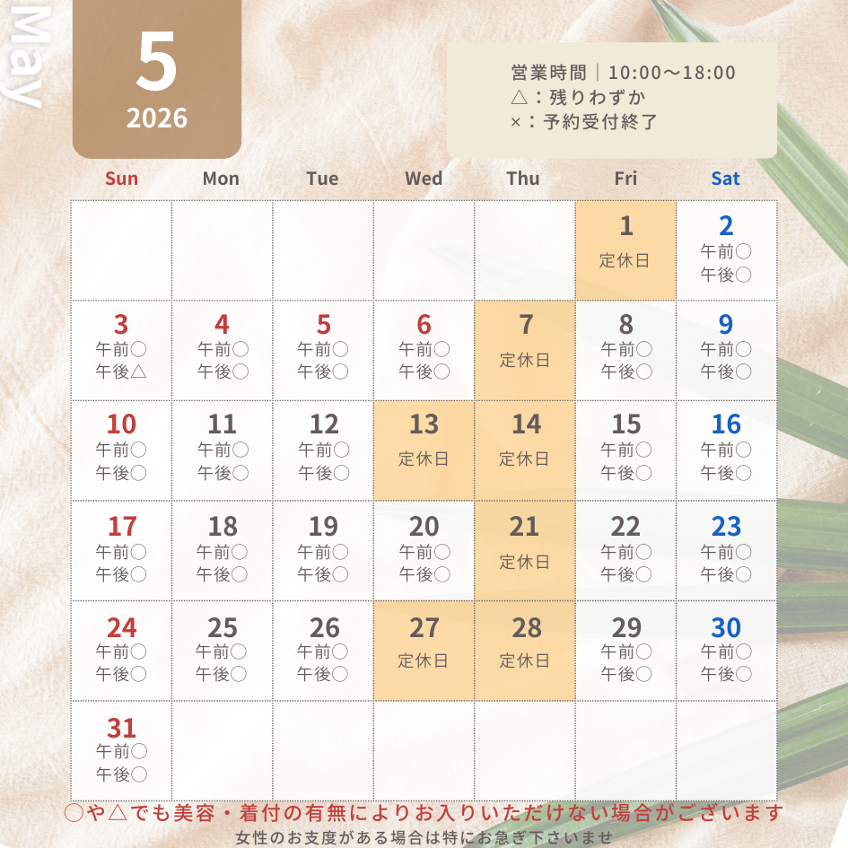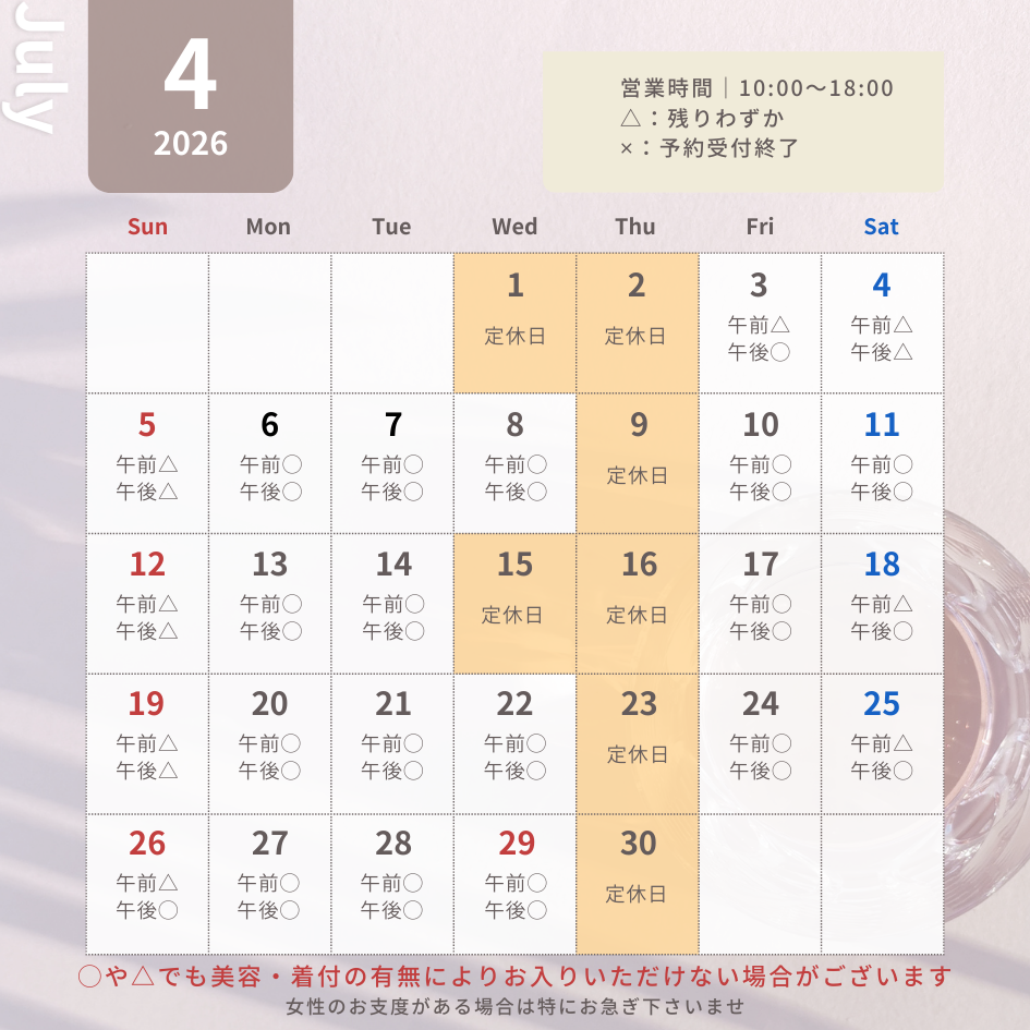 現在2026年6月30日撮影分まで予約可能