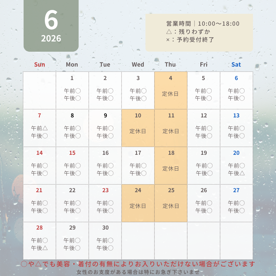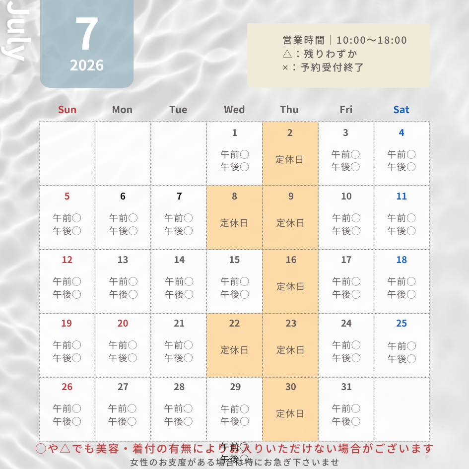 現在2026年7月31日撮影分まで予約可能